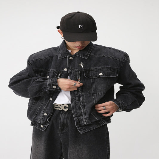 Korean Style Loose Metal Design Short Denim Jacket For Men