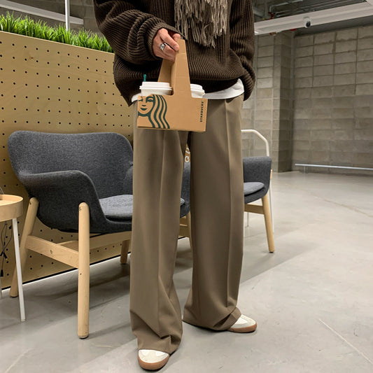 Men's Solid Color Anti-wrinkle Loose Wide-leg Suit Pants