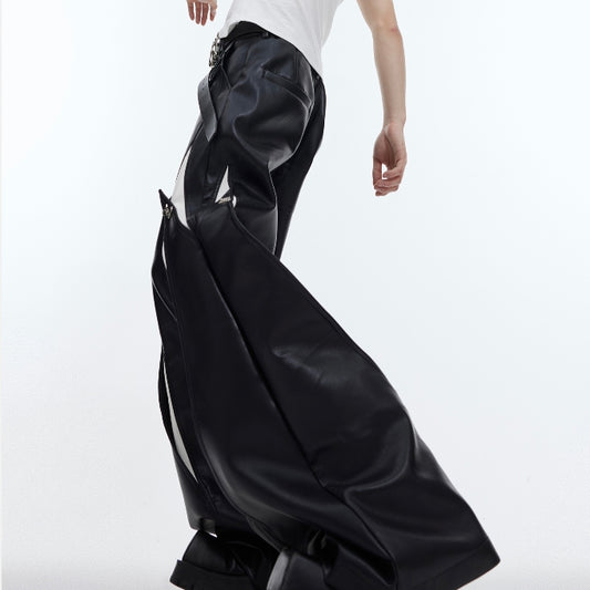 Heavy Industry Niche Deconstructs Leather Pants Metal Button Design