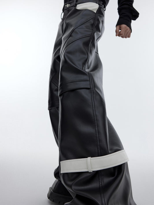 Double-layer Patchwork Leather Padded Shoulder Coat