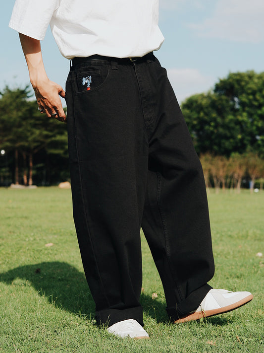 Over-sized Elephant Pocket Embroidered Jeans