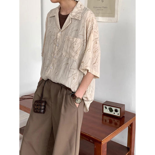 Pattern Cuban Collar Short Sleeve