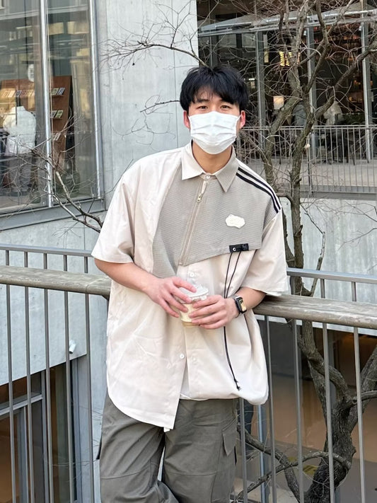 Patchwork Contrast Harajuku Summer Half Sleeves Lazy And Simple Square Collar Shirt