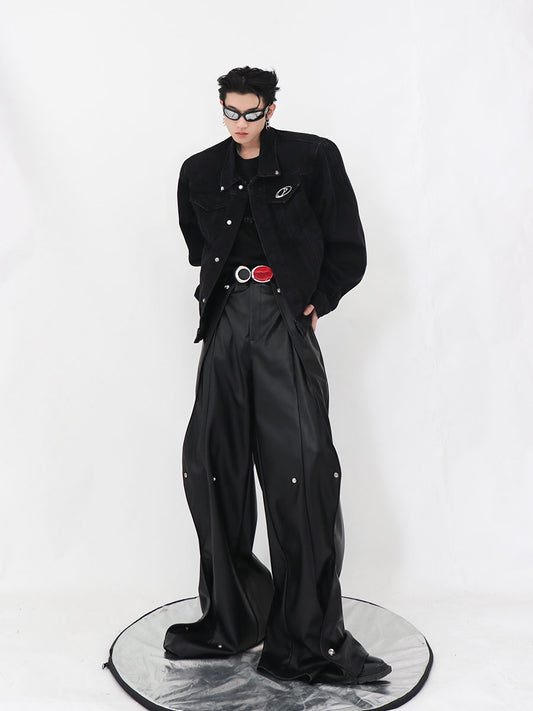Cropped Denim Jacket With Metal Panels And Pads