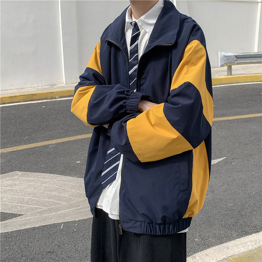 Contrasting Stitching Loose Korean Style Jacket (Unisex)
