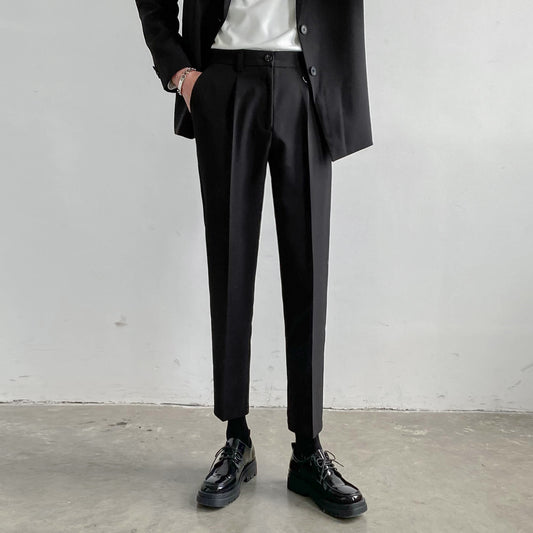 Non-iron Straight Suit Trousers Men Loose Casual