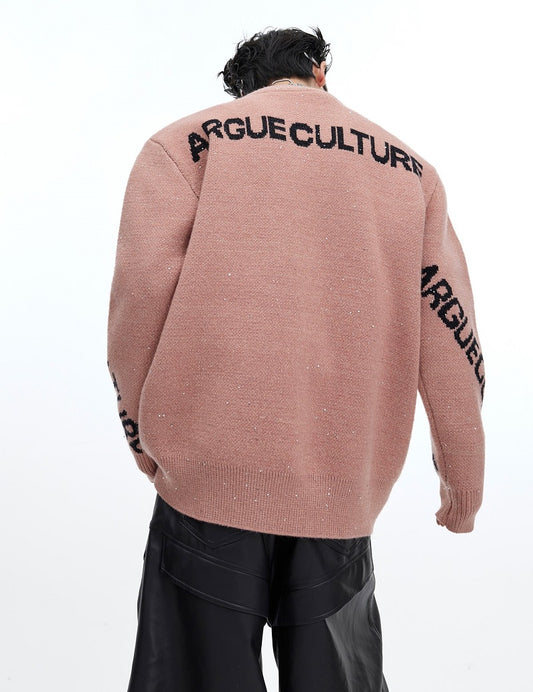 Retro Contrast Color Letter Tassel Sweater (Unisex)