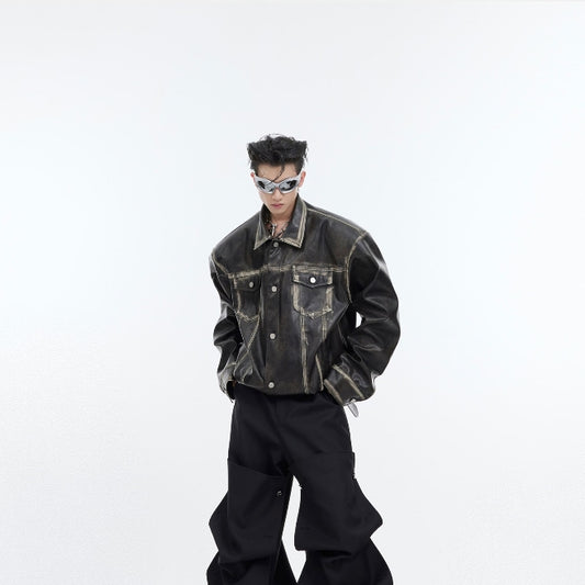 Heavy Vintage Leather Distressed Padded Shoulder Jacket