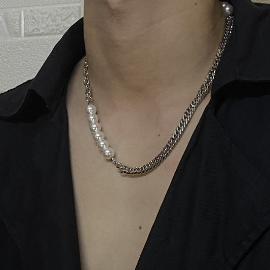 Titanium Steel Stitching Pearl Necklace(Unisex)