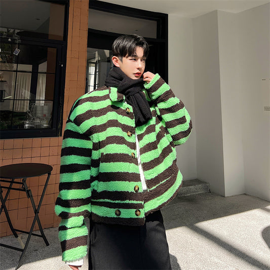 Zebra Print High Waist Faux Lambswool Fleece Jacket