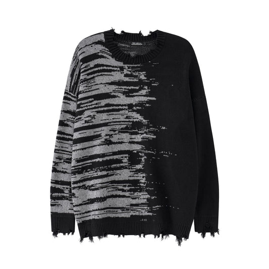 Zebra Pattern Color Matching Ripped Knitted Sweater