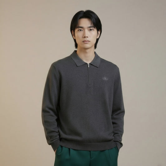 Zip-up Stand-up Collar Shoulder Pad Base Shirt