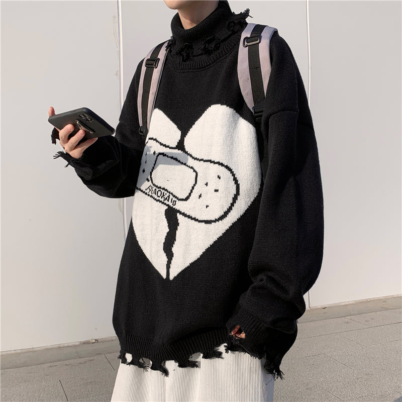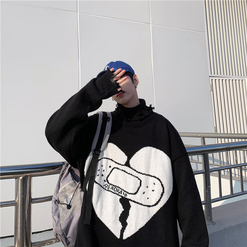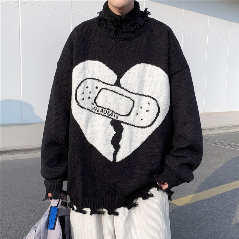 Heart Band-Aid Jacquard Versatile Knit Sweater