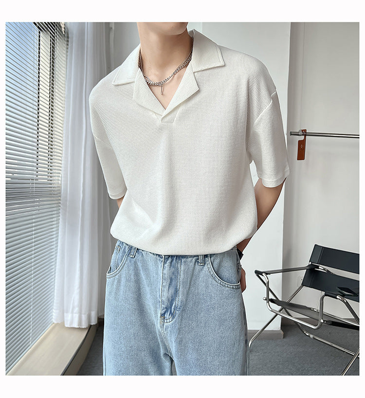 Plain Short Sleeve Polo Knitted Drop-shoulder
