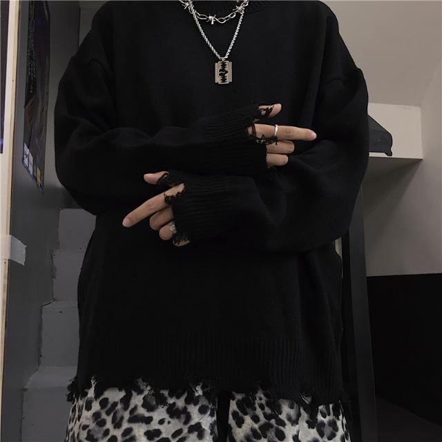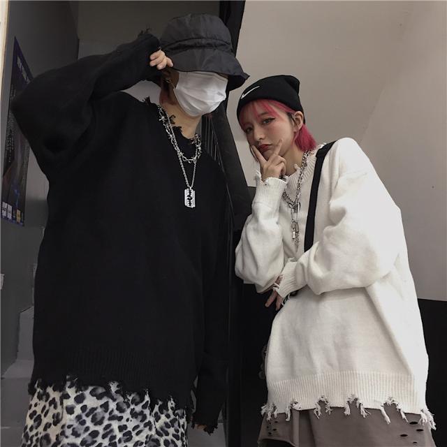Korean Version Of The Lazy Loose Pullover Tattered Sweater Knit Sweater (Unisex)