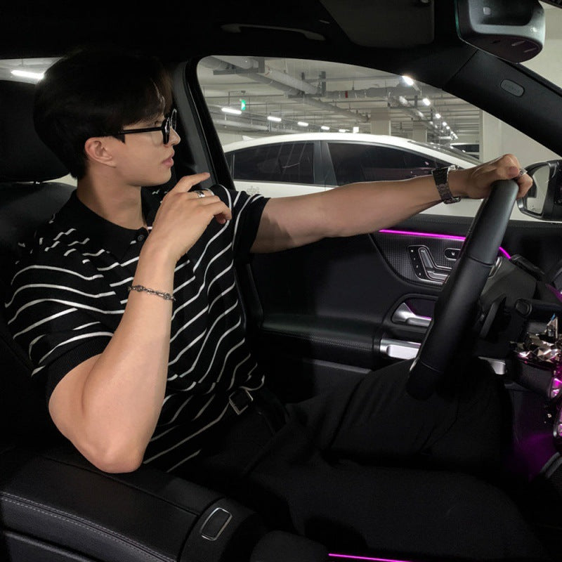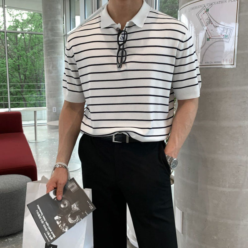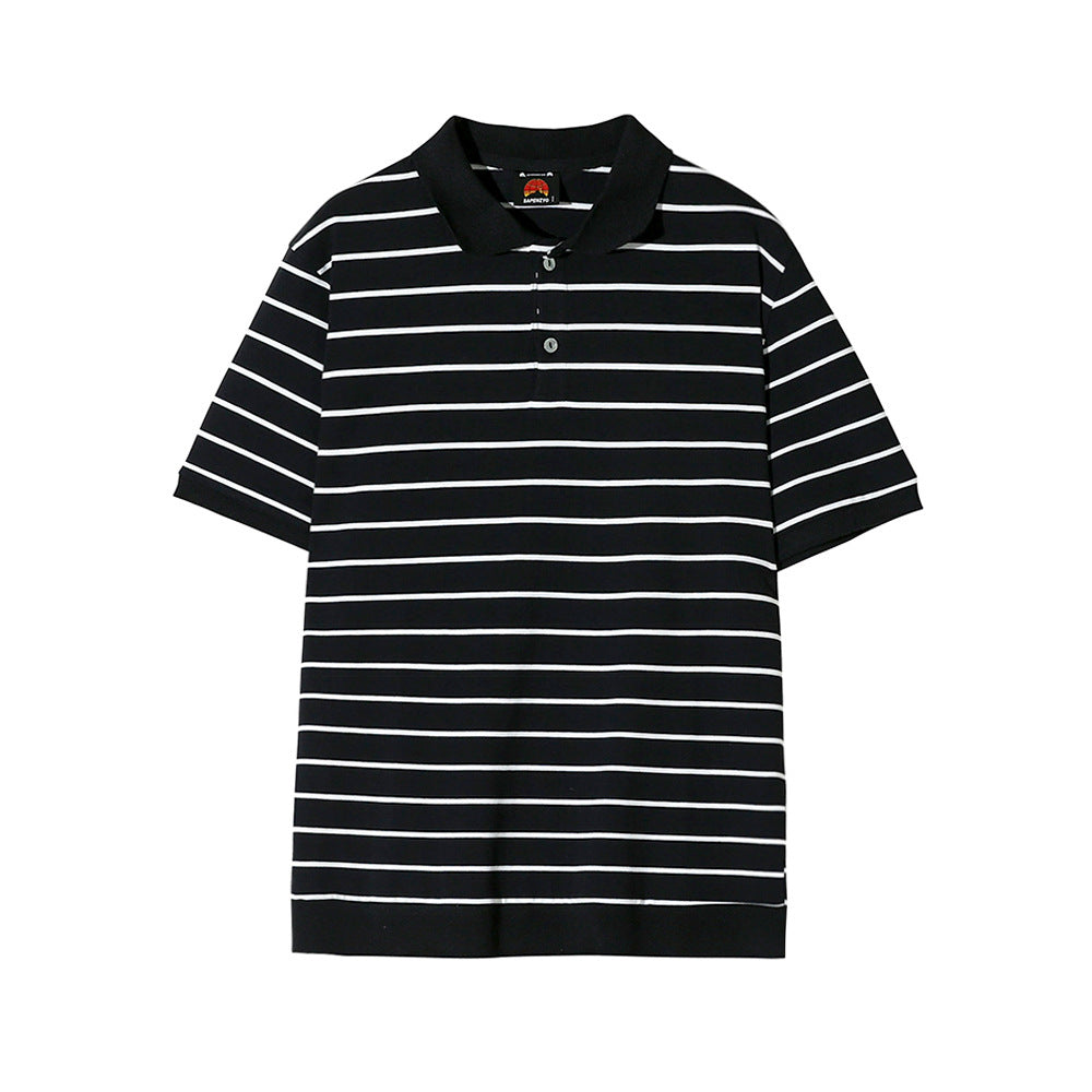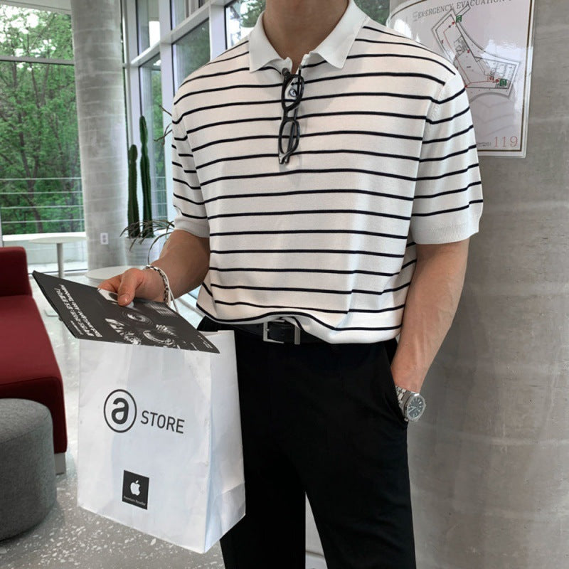 Loose Cotton Striped Short Sleeve Polo Shirt