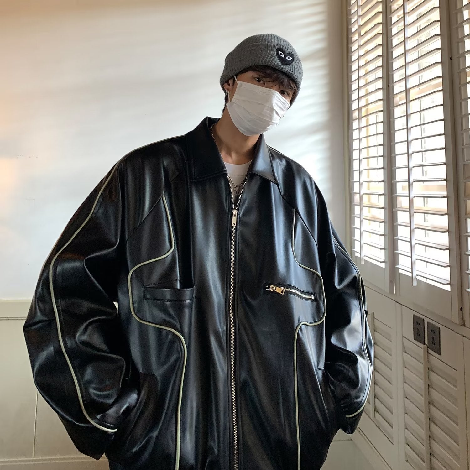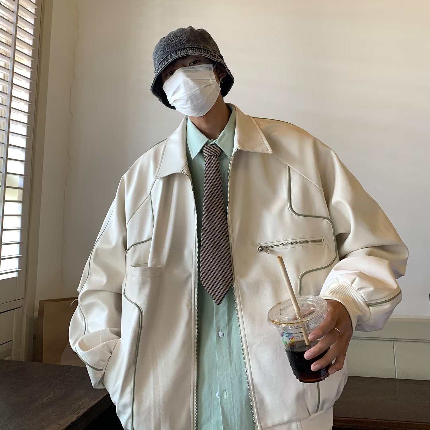 Retro Solid PU Leather Lapel Jacket(Unisex)