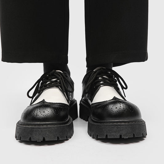 Black Carved Brogue Big Toe Casual Leather Shoes