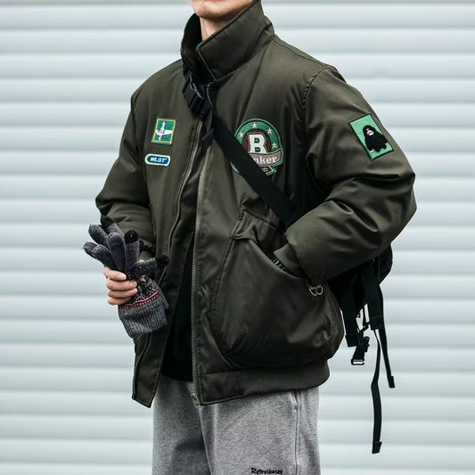 Heavy Simple Stand Collar Casual Short Cotton-padded Coat