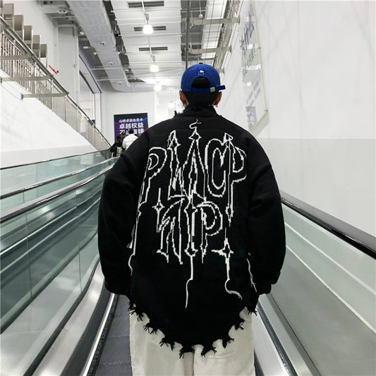 Lace Loose Round Neck Knitted Ripped Sweater(Unisex)