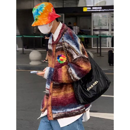 Contrast Color Pattern Cardigan Sweater(Unisex)