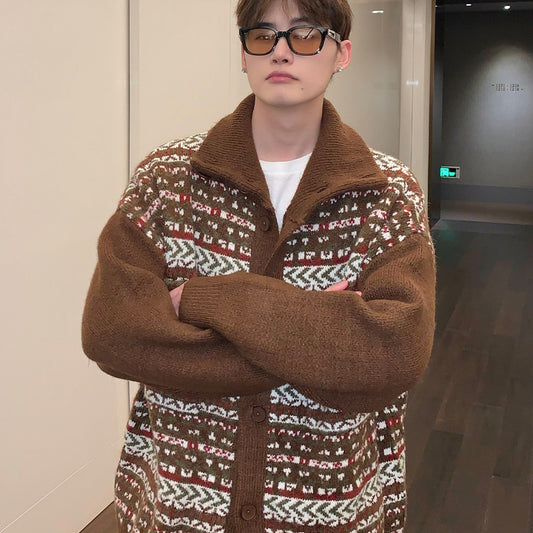 Thickened Mohair Hooded Knitted Cardigan For Men