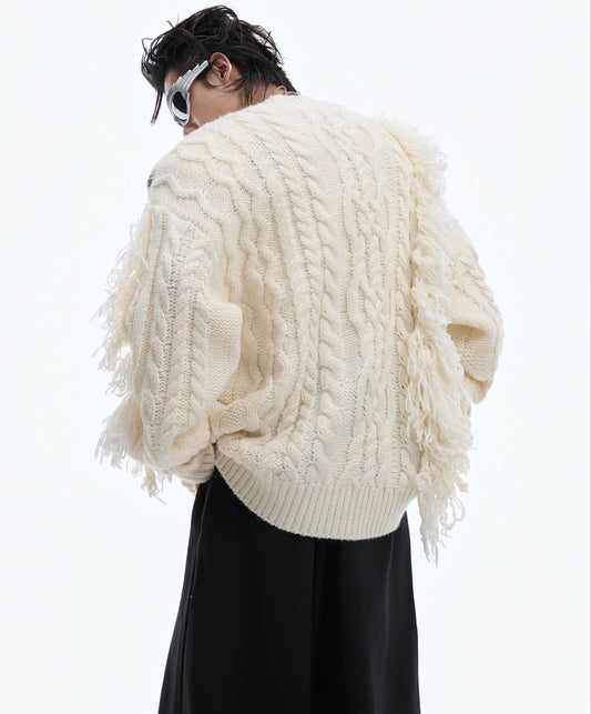 Threaded Tassel Metal Button Sweater