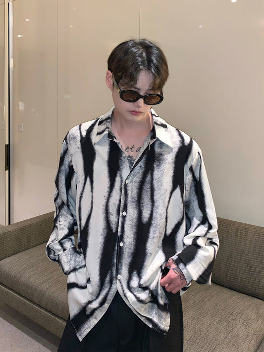 Ink Tie Dyed Contrast Lapel Shoulder Pad Shirt