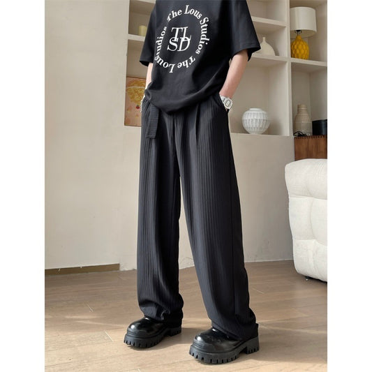 Ink Folds Drape Loose Straight-Leg Casual Mopping Pants