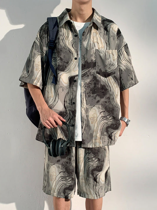 Ink Tie Dye Floral Short Sleeved Shirt and Pant (SET)