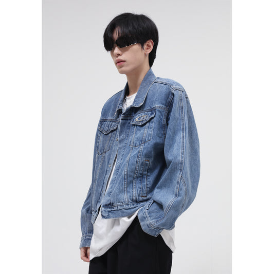 Korean Style Loose Metal Design Short Denim Jacket For Men