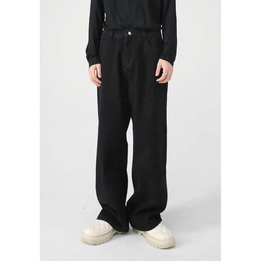 Korean Version Loose Elastic Waist Straight Casual Jeans For Men