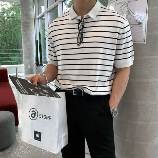 Loose Cotton Striped Short Sleeves Polo Shirt