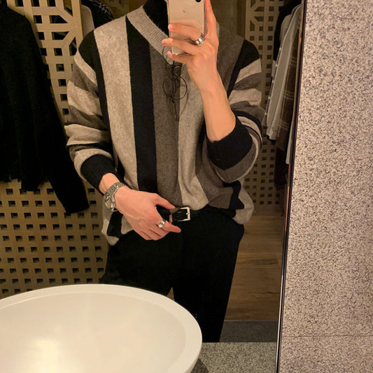 Loose Contrast Thickened Pullover Long Sleeved Sweater