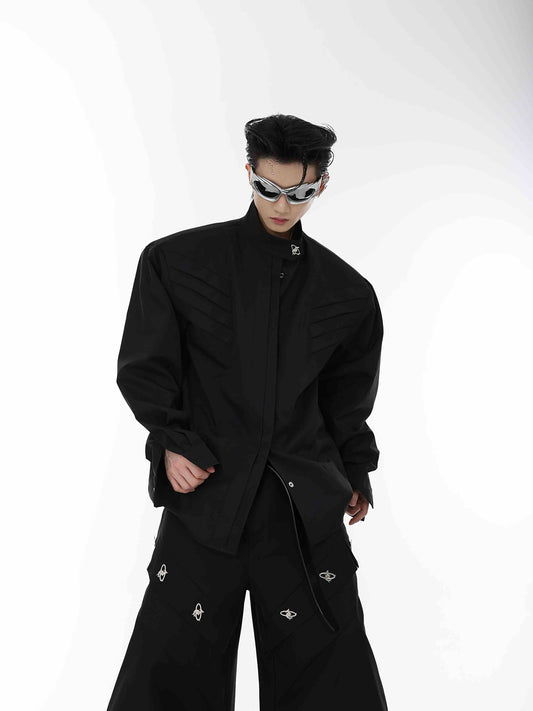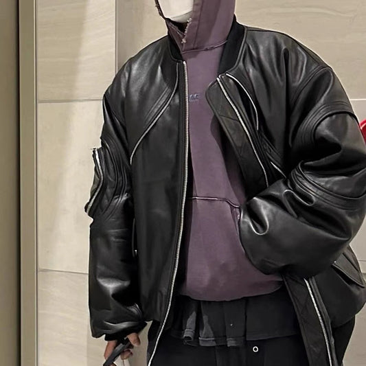 Loose Round Arm Curved Zipped Cotton-padded Leather Jacket Short Coat