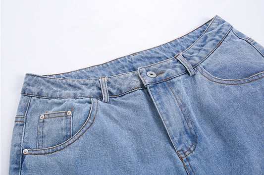 Loose Straight Wide Leg Nine Points Casual Jeans