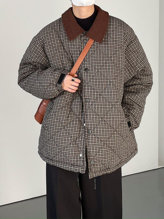 Plaid Coat Men's Loose Retro Cotton-padded Jacket