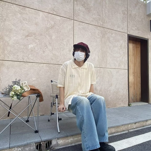 Retro Casual Hollow-out Knitted Shirt Thin (Uisex)