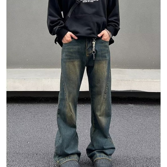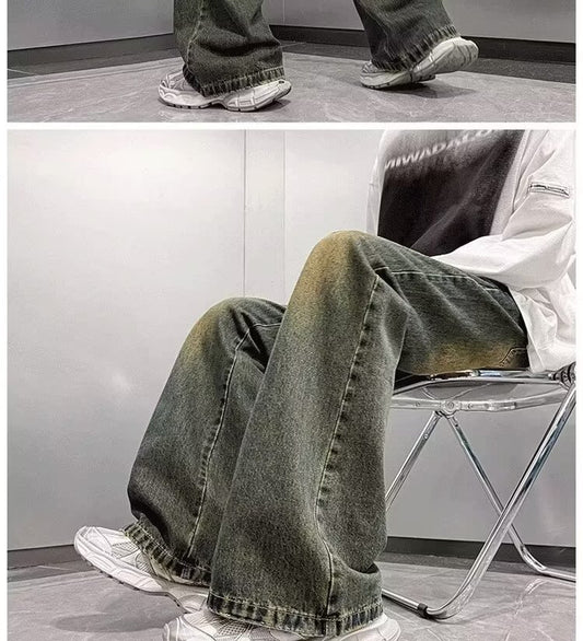 Retro Distressed Loose Straight Washed Jeans