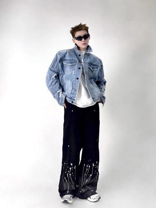 Ripped Motorcycle Denim Jacket Men's Clothing