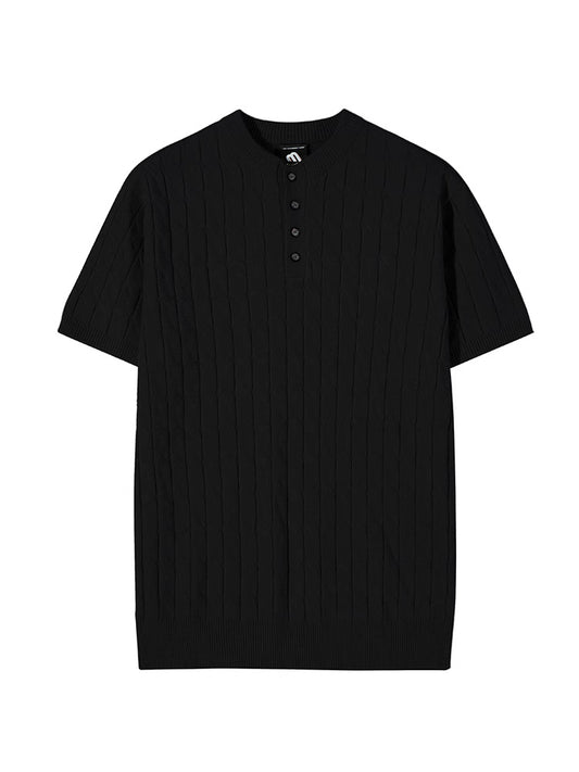 Solid Color Hemp Pattern Placket Collar Short-sleeved Knitted T-shirt