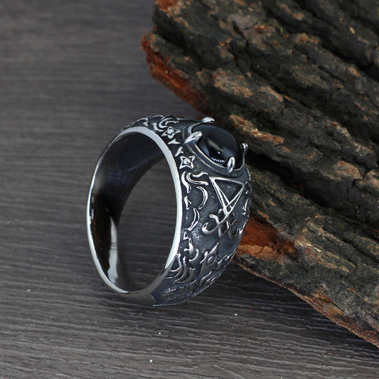 Stainless Steel Nude Black Gemstone Ring