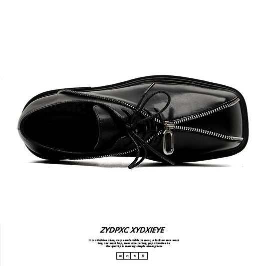 Square Toe Zipper Black Leather Shoes