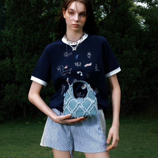 Digital Direct Injection Distressed Printed Short-sleeved T-shirt