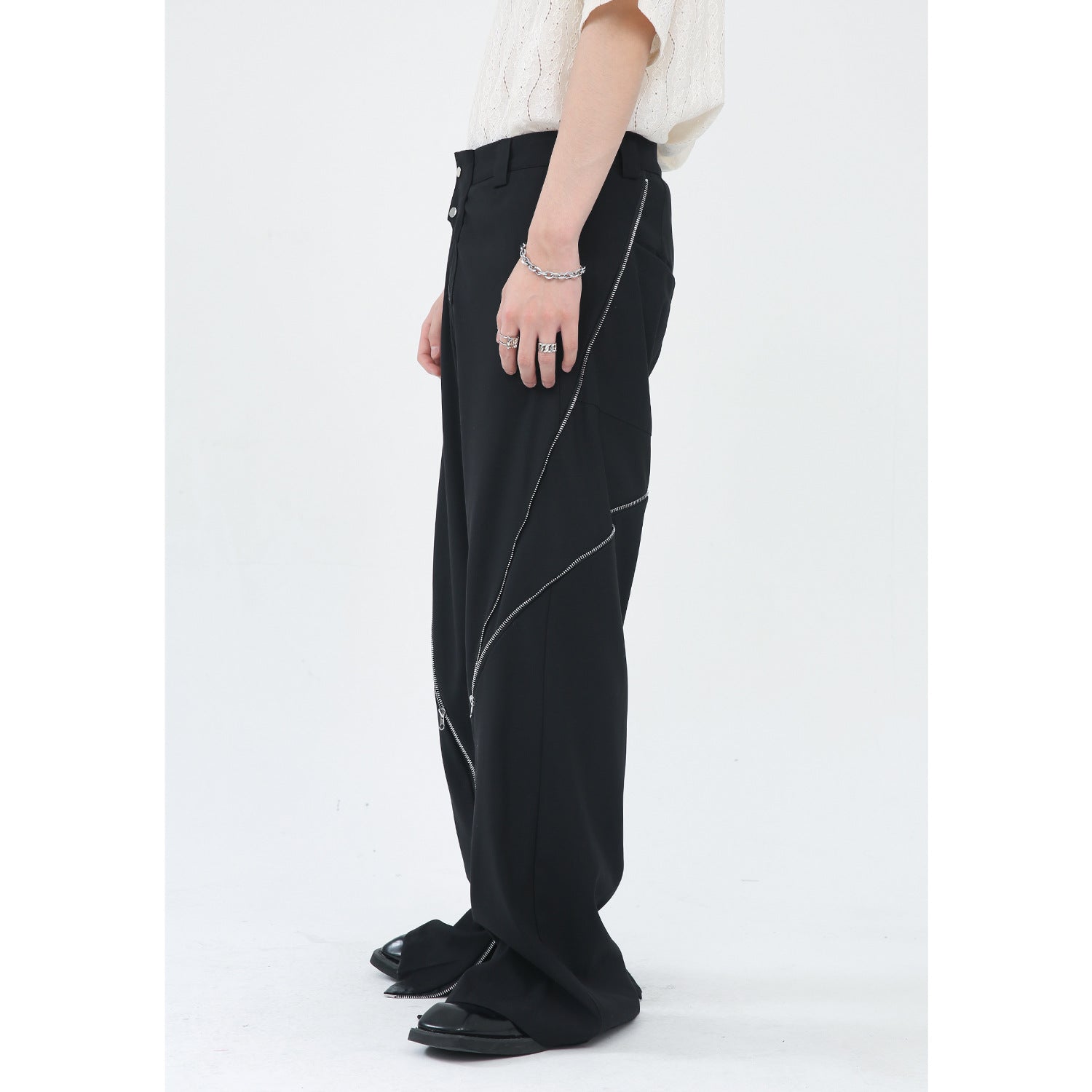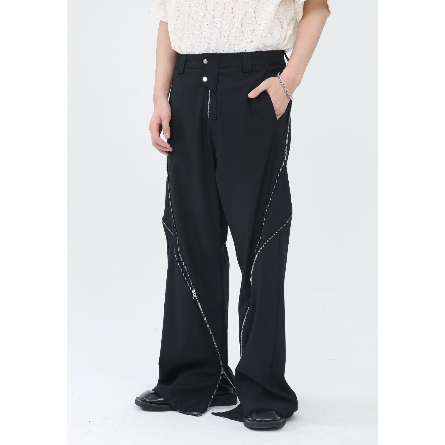 Korean Version Zipper Slit Micro Vertical Pants Men
