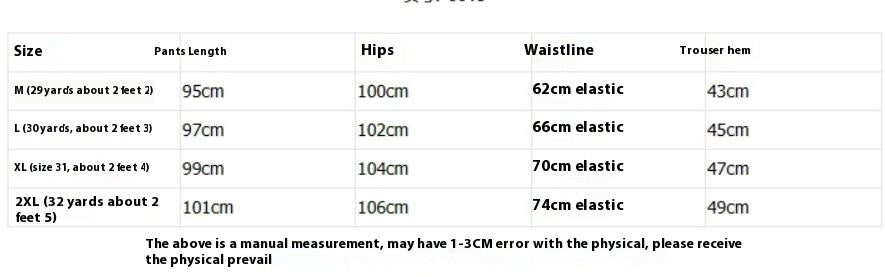 Size: M(29 yards about 2 feet 2),L(30 yards about 2 feet 3),XL(31 yards about 2 feet 4),2XL(32 yards about 2 feet 5)