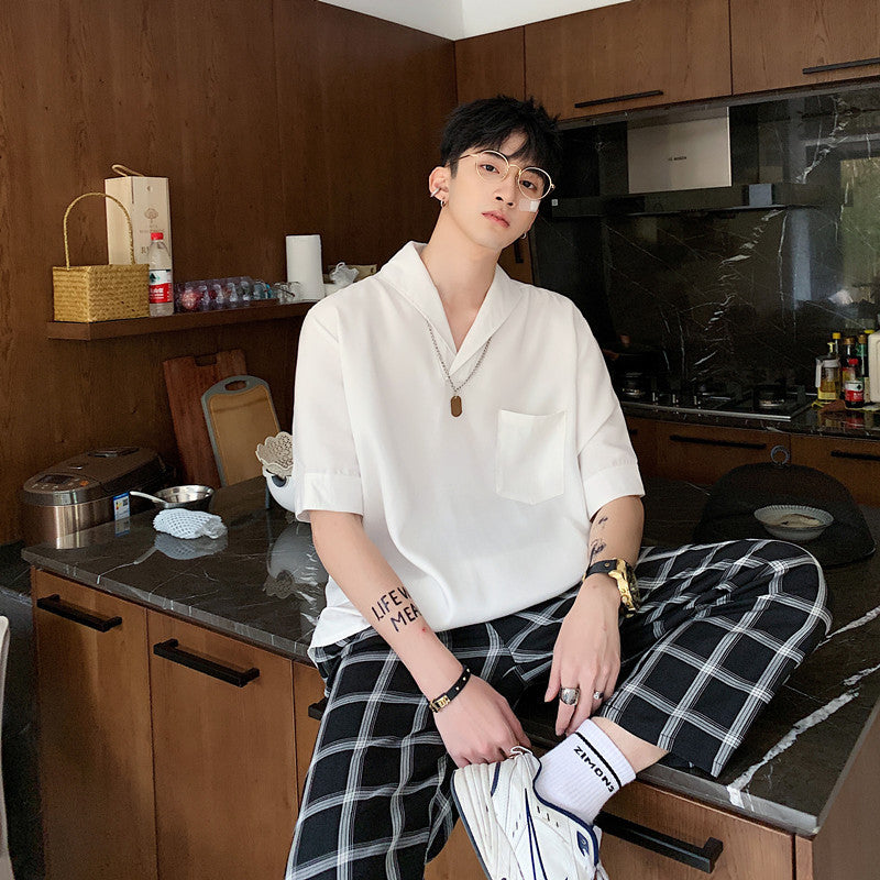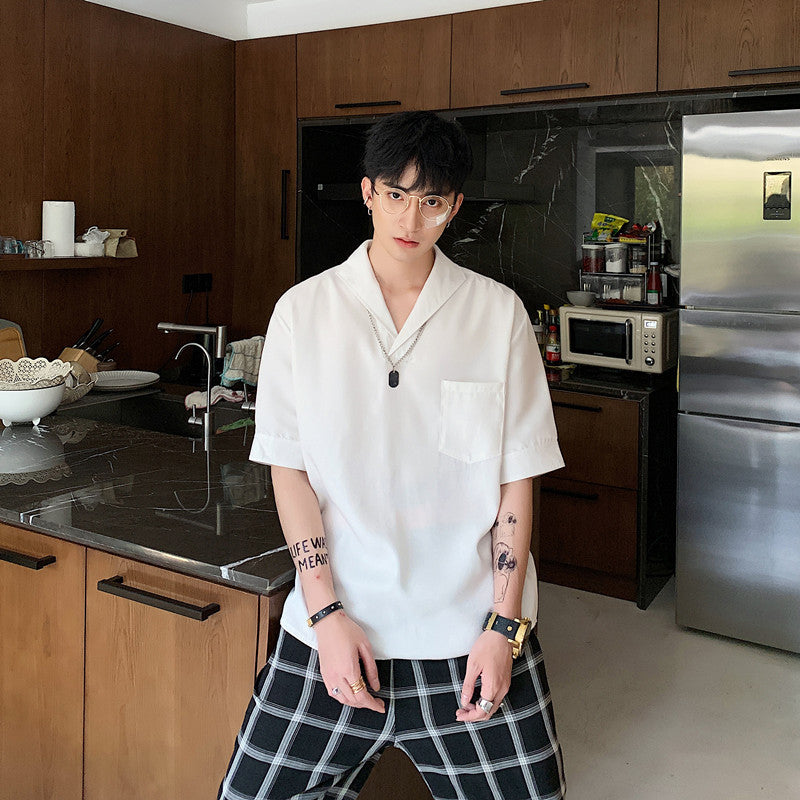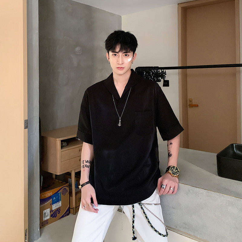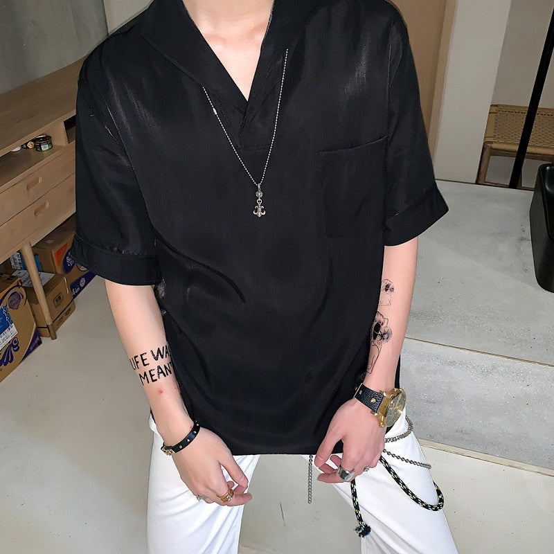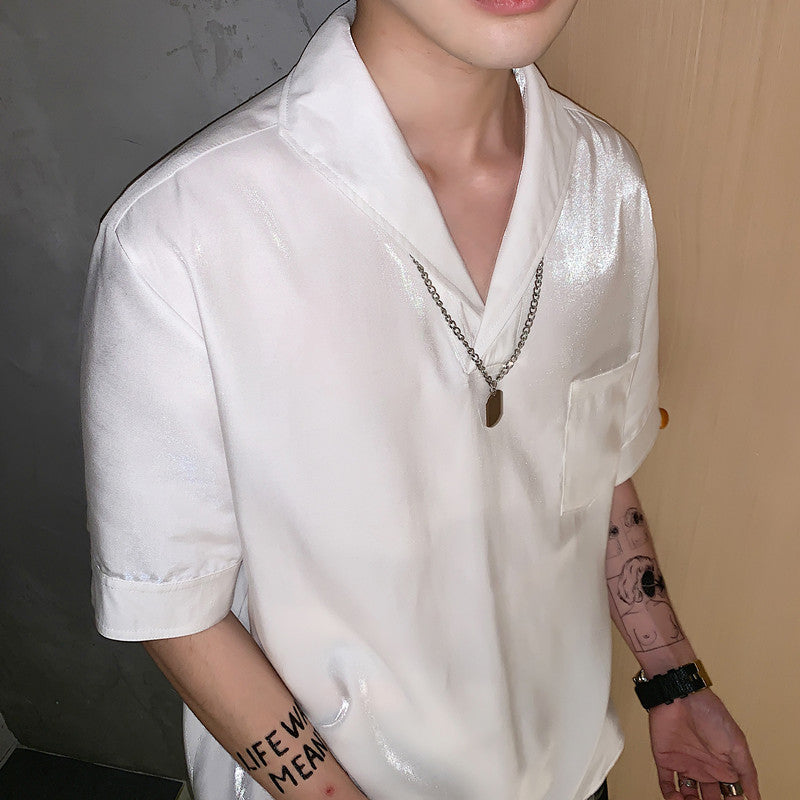 Pearlescent Temperament All-match Pullover Short-sleeved Shirt British Men's Top
