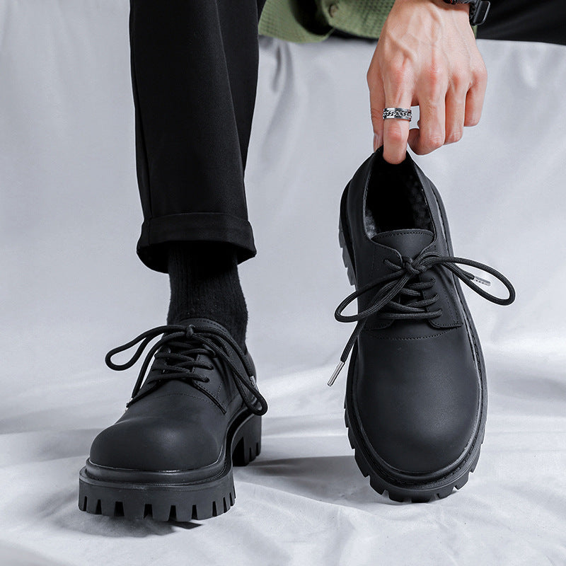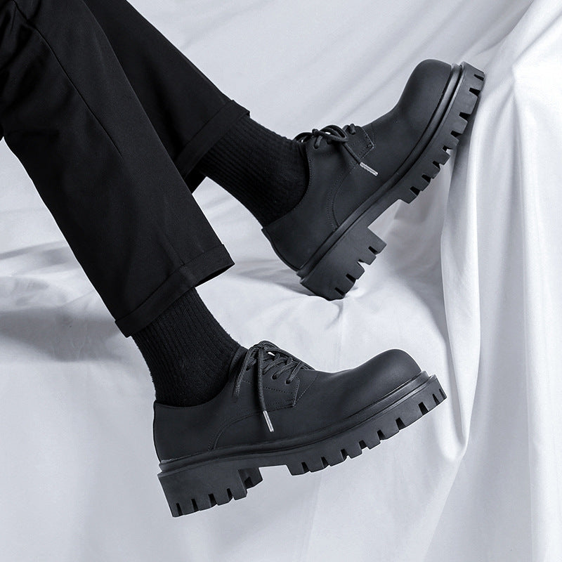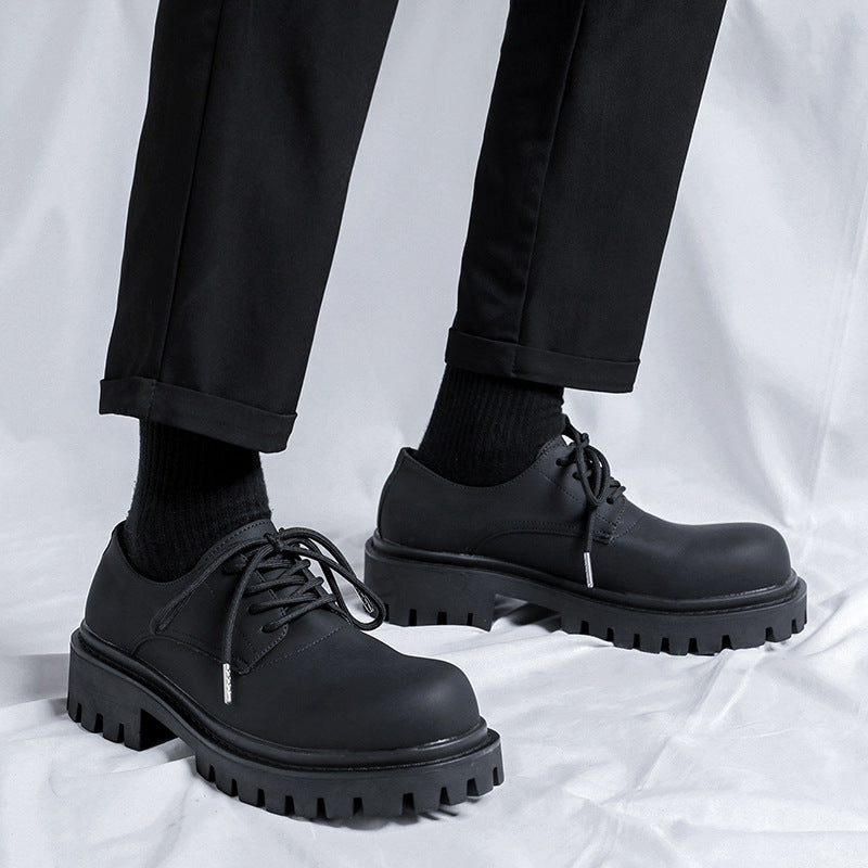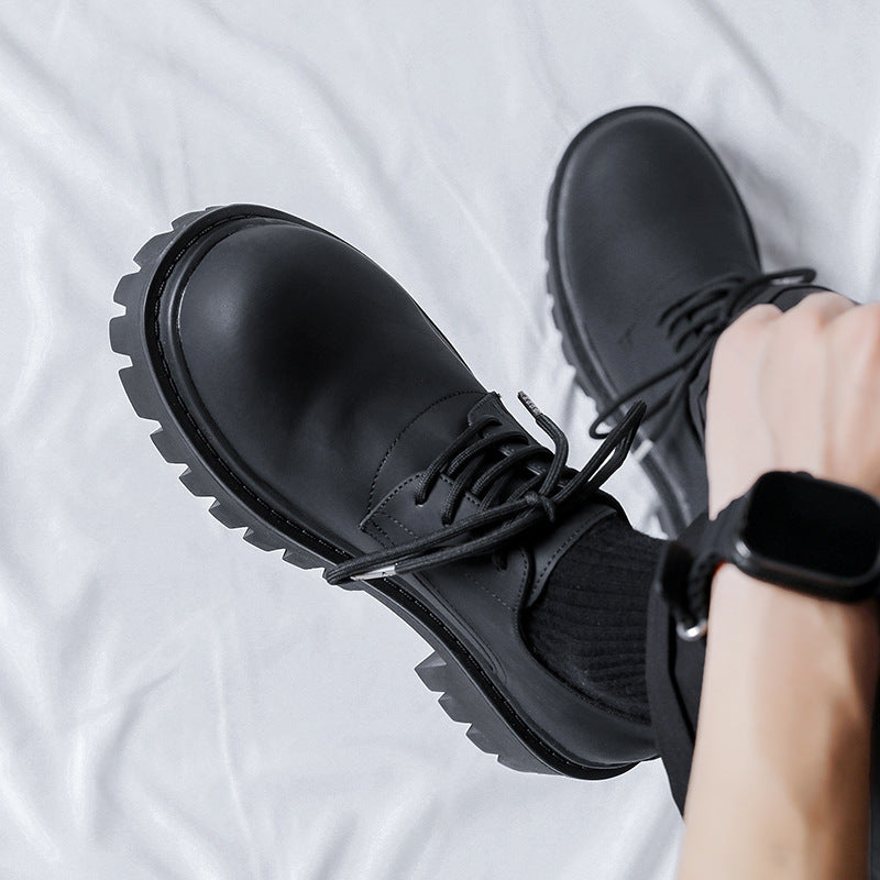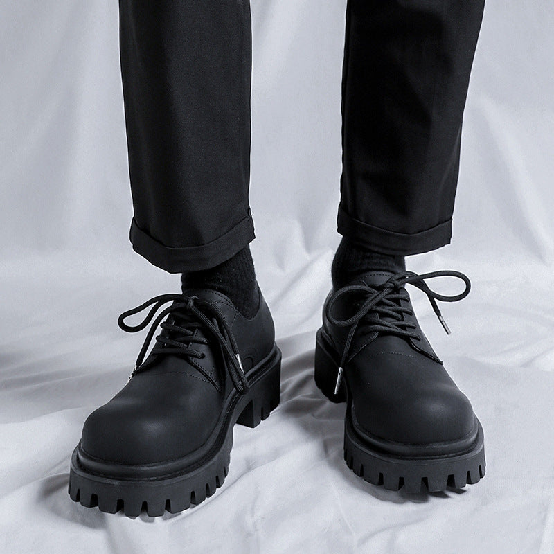Retro Big Thick Bottom Round Toe Men's Small Leather Shoes