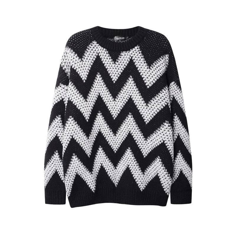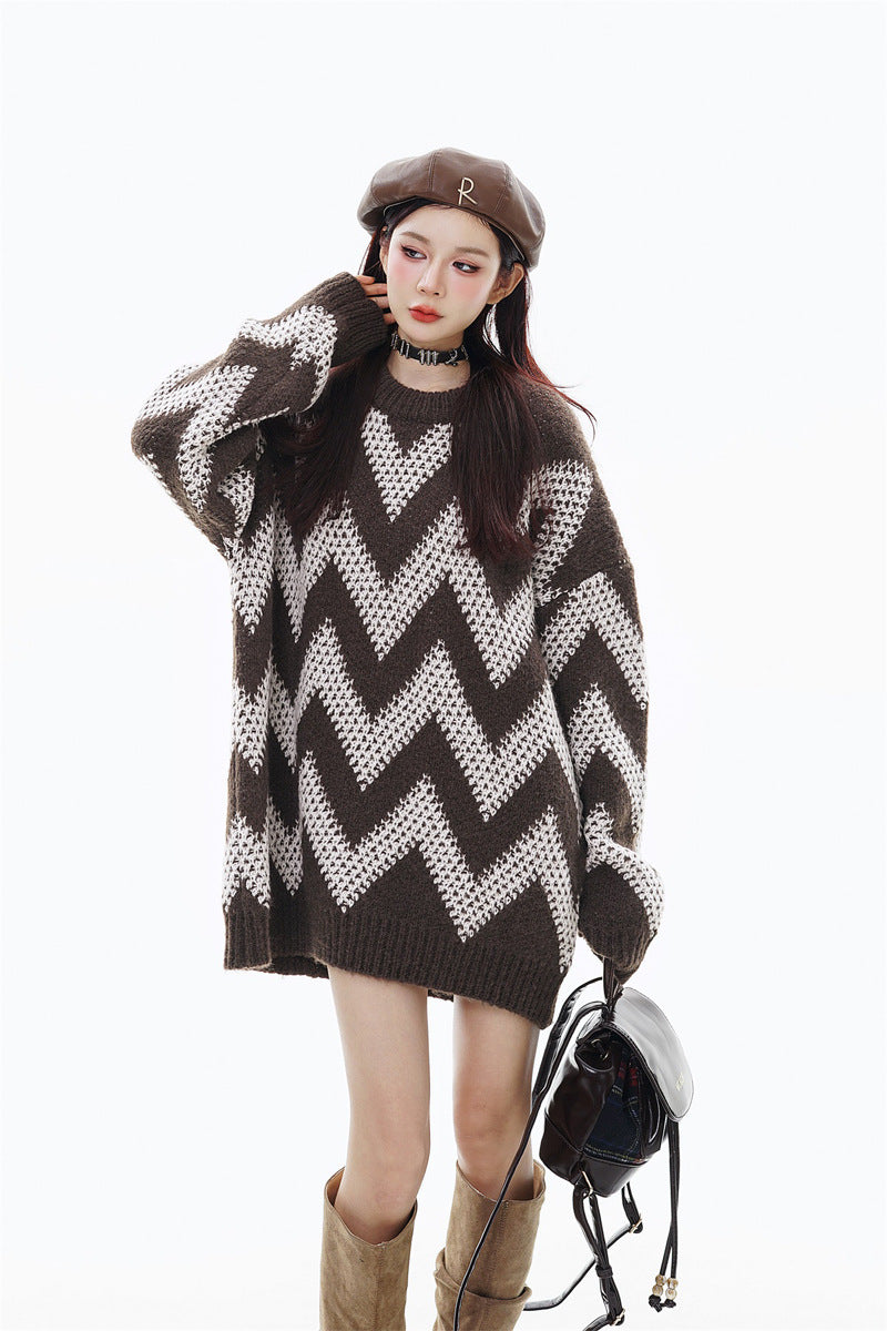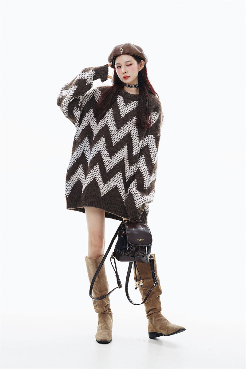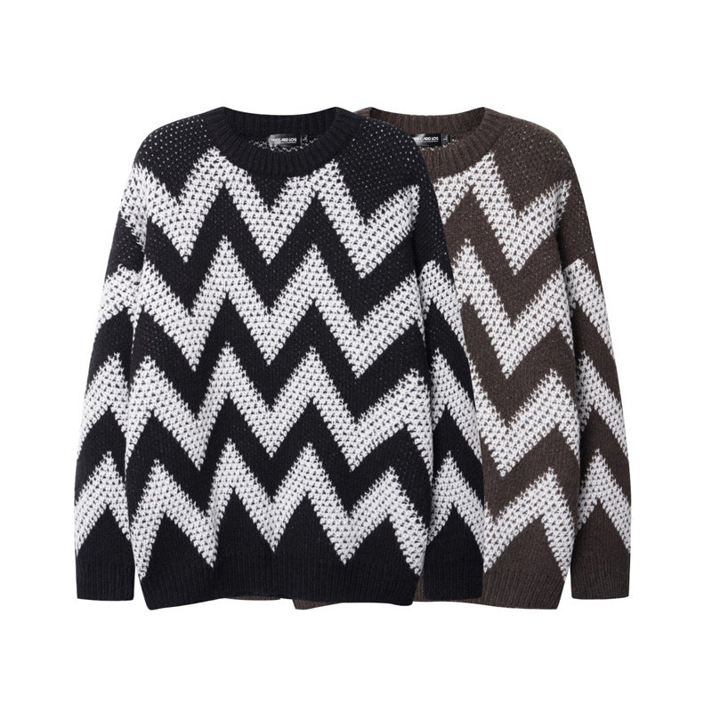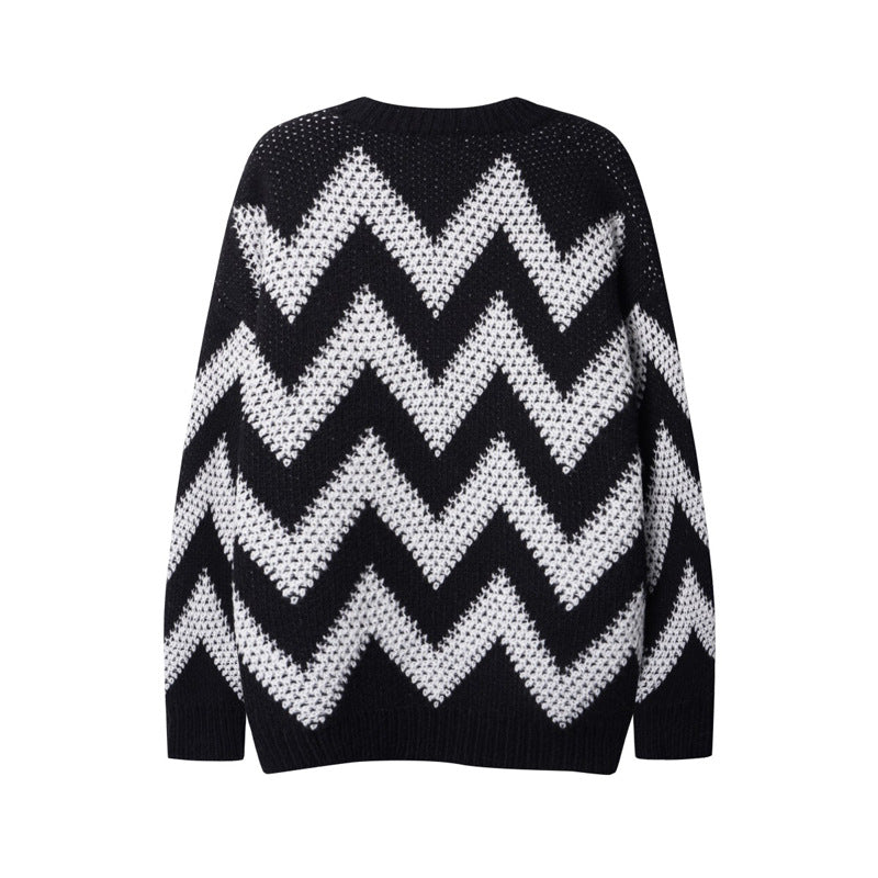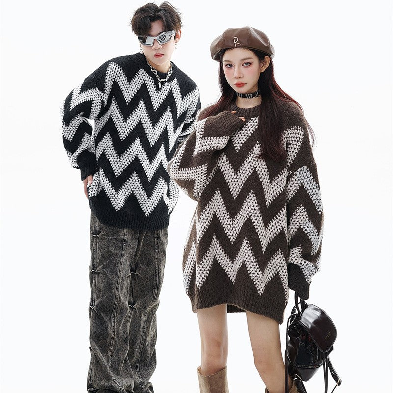 Retro Diamond Plaid Wave Striped Sweater (Unisex)
