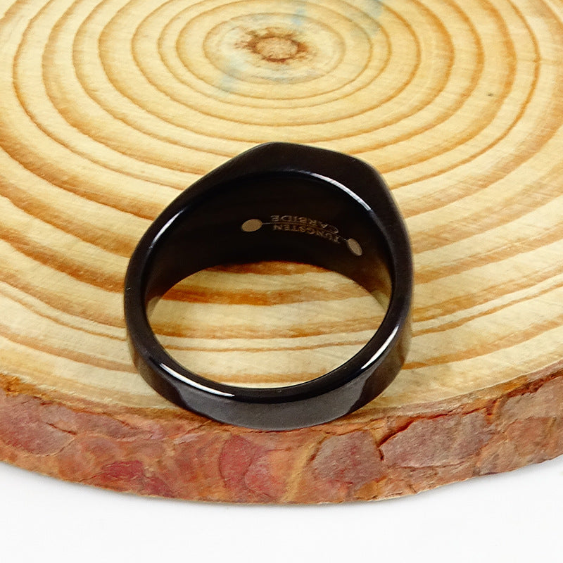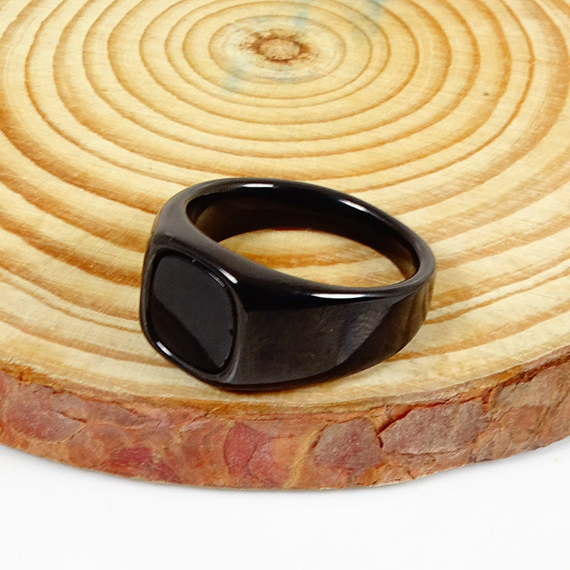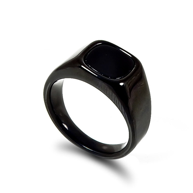 Stainless Steel Nude Black Gemstone Ring